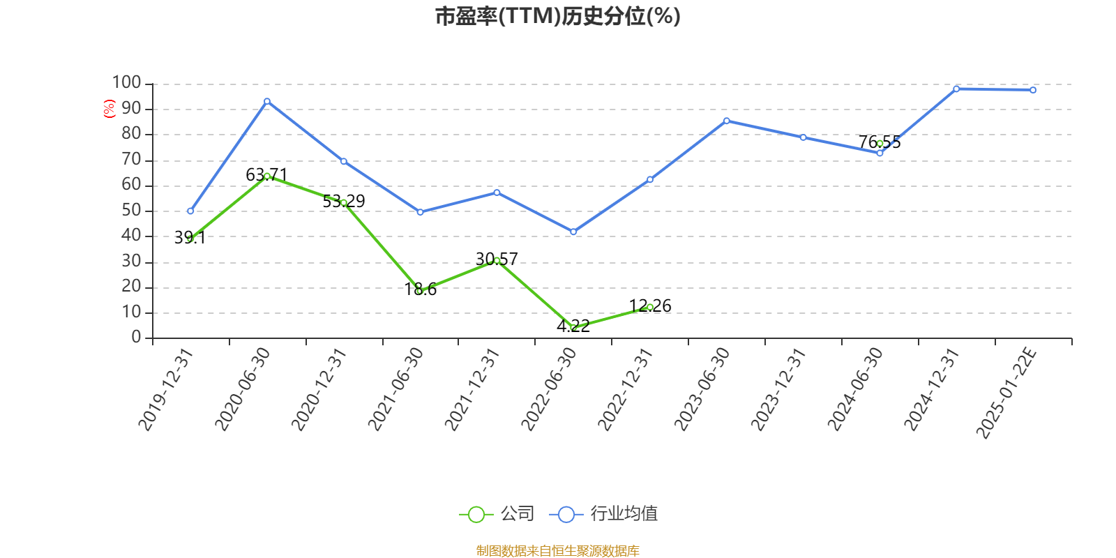 以本次披露业绩预告均值计算,公司近年市盈率(TTM)图如下所示: