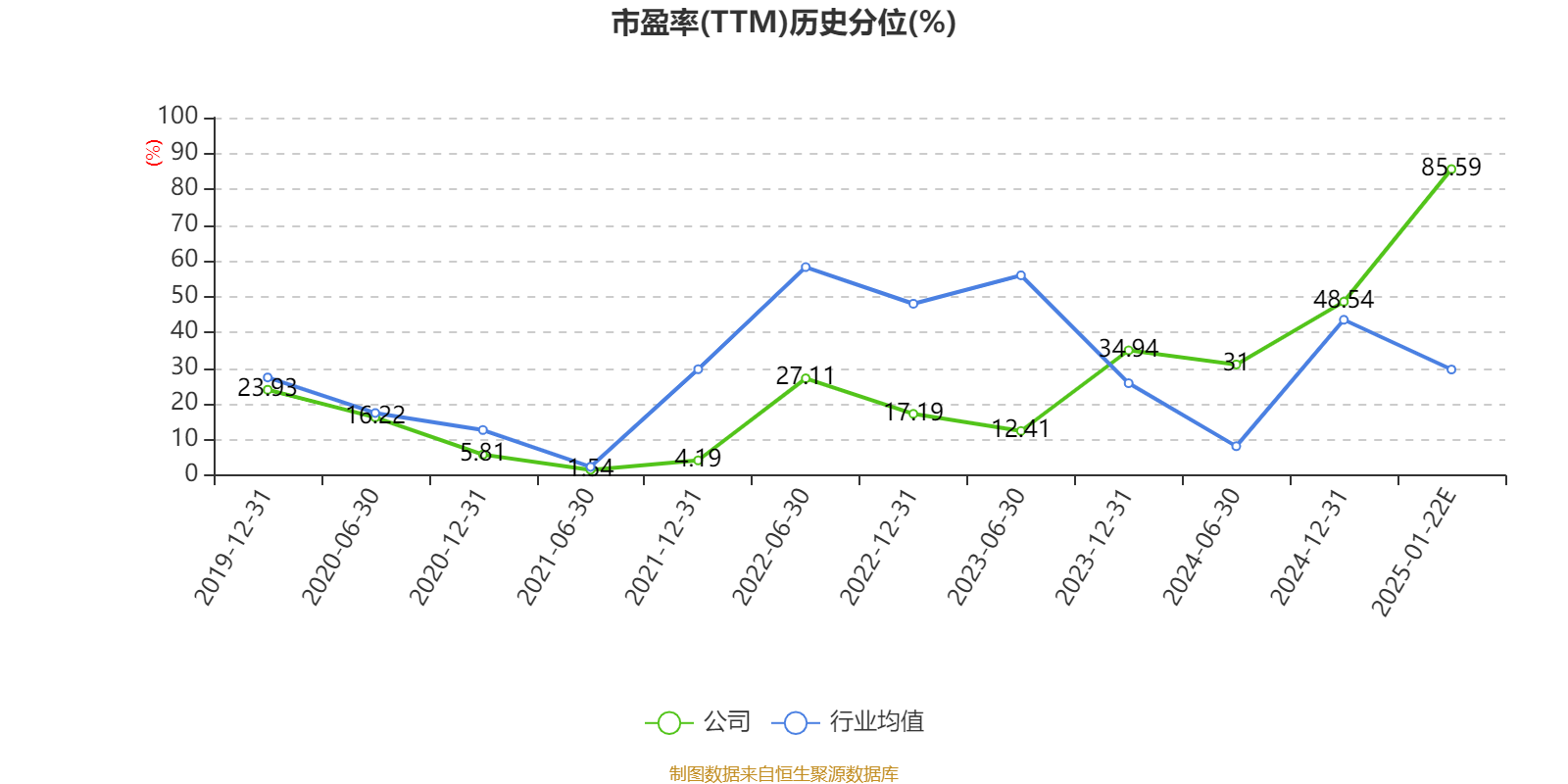 以本次披露业绩预告均值计算,公司近年市盈率(TTM)图如下所示: